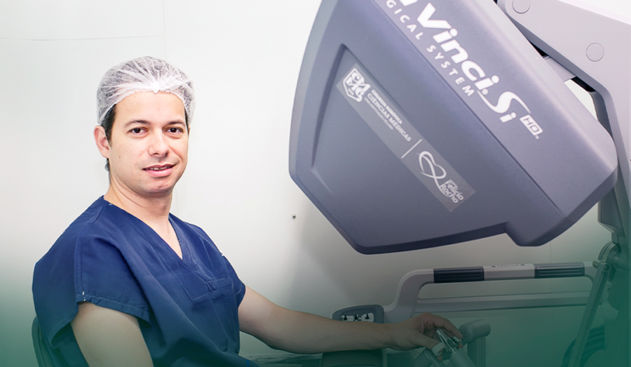 A cirurgia robótica é uma evolução da cirurgia minimamente invasiva. Ela é realizada por meio de pequenas incisões, nas quais são inseridos braços robóticos controlados integralmente pelo cirurgião, a partir de um console.